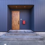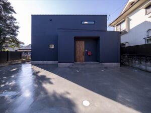 青の外観が美しい窓の少ない