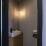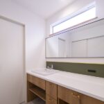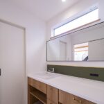 洗面はグリーンのアクセントを