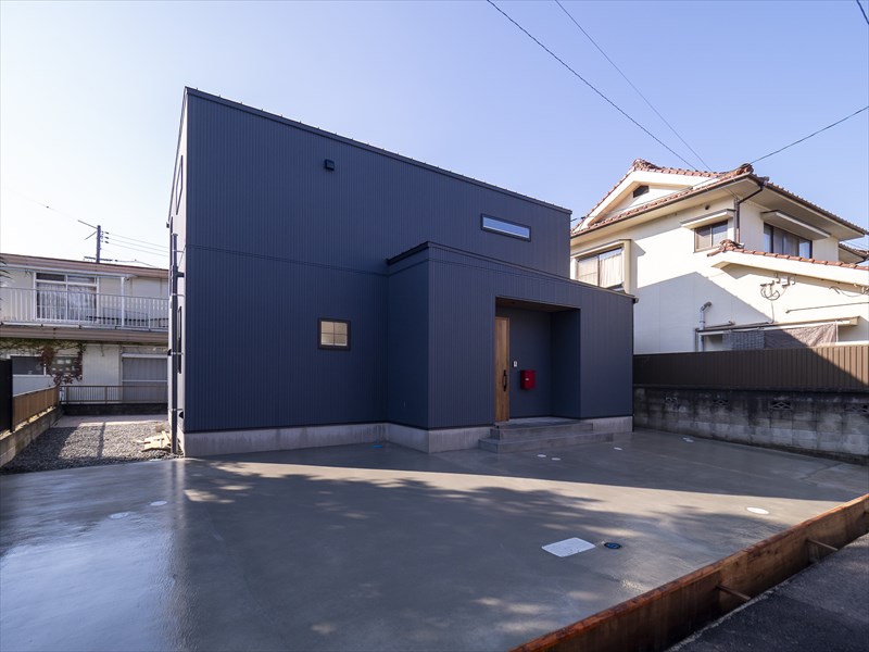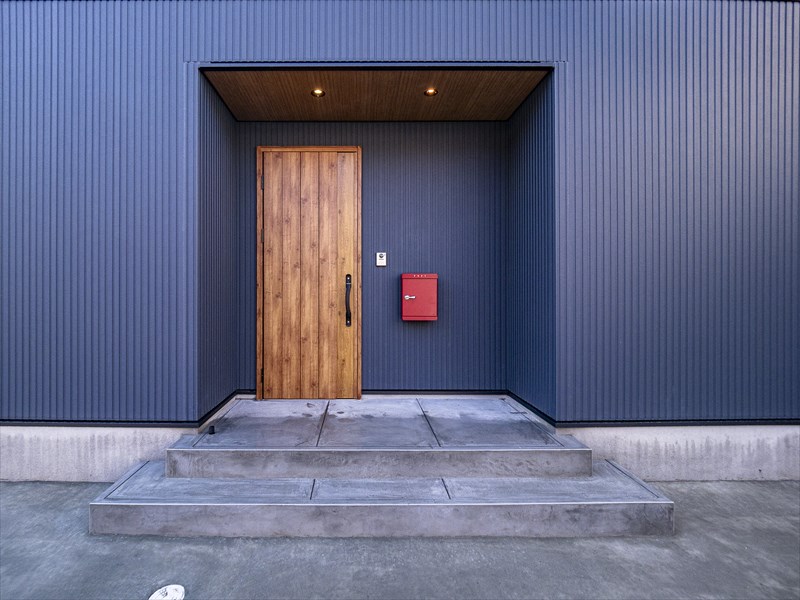 青の外観が美しい窓の少ない