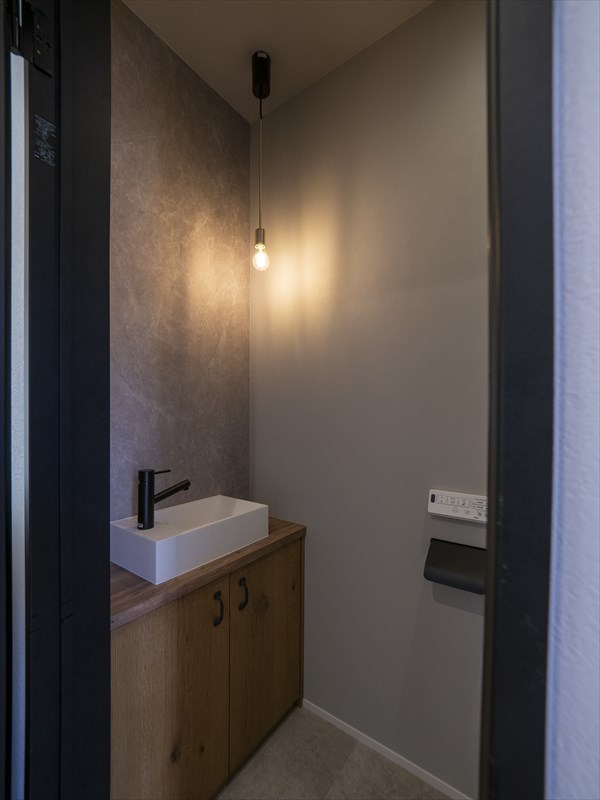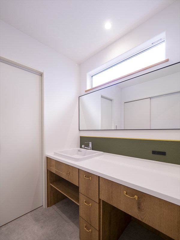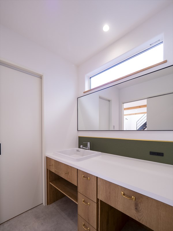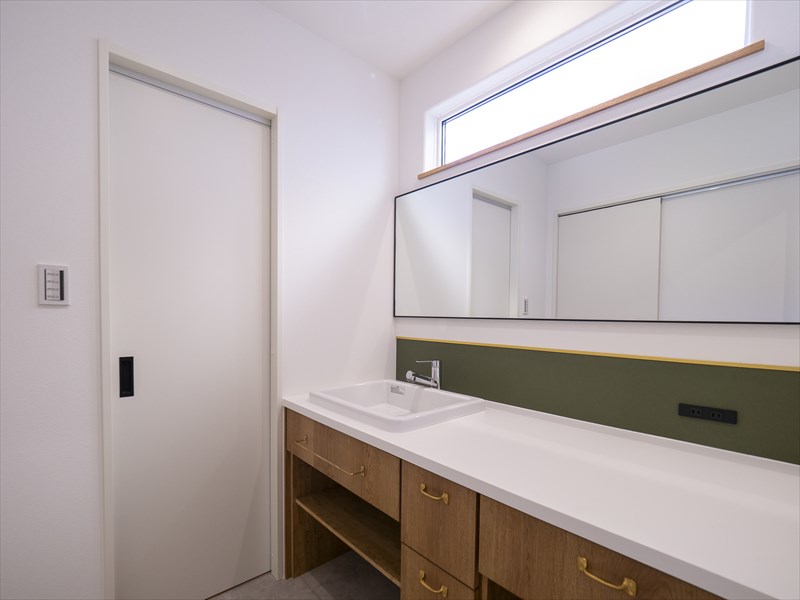 洗面はグリーンのアクセントを