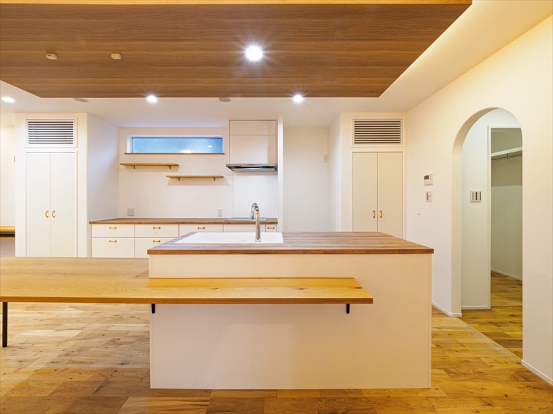 賃貸時代、キッチンの高さが合わず腰を痛めた経験から、カウンターの高さをミリ単位でオーダー。